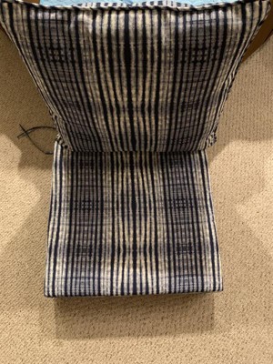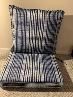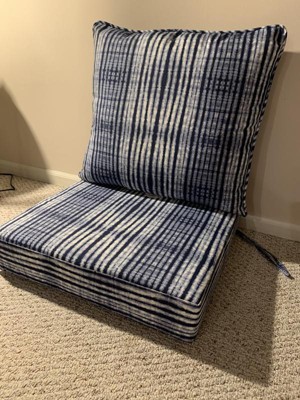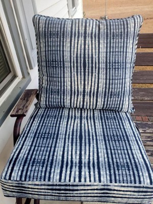 [This review was collected as part of a promotion.] We have an older wicker porch chair that has older cushions that needed to be tossed. The Arden Selections Blue Shibori Striped Outdoor Deep Seat Set is perfect for the chair. It is well-made, comfortable. and such a beautiful vibrant design.