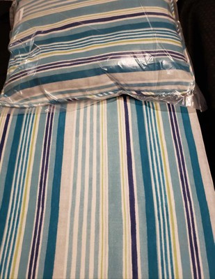 [This review was collected as part of a promotion.] I got the Arden Selections Outdoor Deep Seating Cushion 24x24 Set in teal Cobslt stripe jand began using them on the outdoor glider I have. They are thick and provide a comfortable place to sit outside