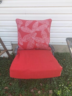 [This review was collected as part of a promotion.] Arden Selections - Arden Selections Outdoor Deep Seating Cushion Set 24 x 24, Red Leaf Palm, is very soft and comfortable a little oversized for my average seat but it is a good snug fit and doesn’t slide. Highly recommend