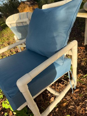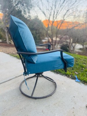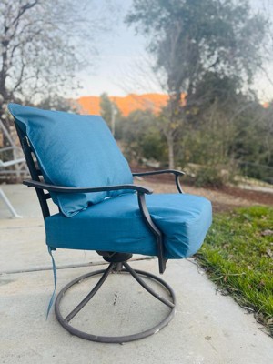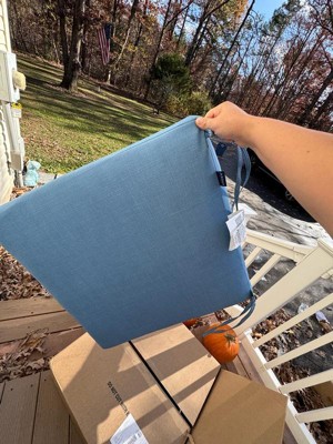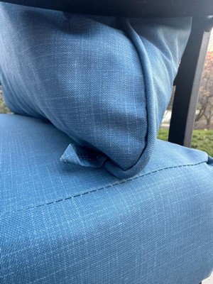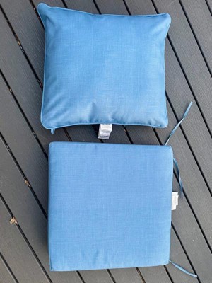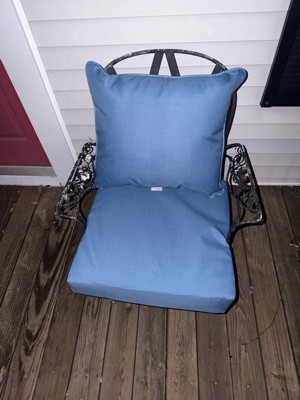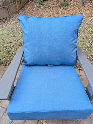 [This review was collected as part of a promotion.] This is an extra big cushion for patio furniture. I thought it would fit on my deep seated outdoor chair, unfortunately it doesn’t. The quality of the cushions is really nice and I like that the bottom cushion has strings to tie it to a chair. The blue color is true to color. Cushion does fit on sectional patio seat and is very comfortable.