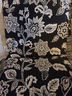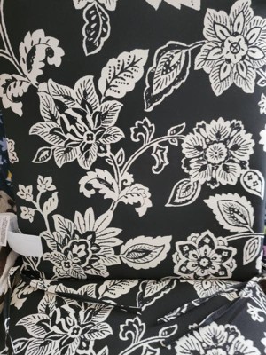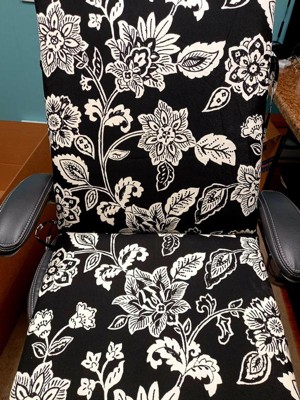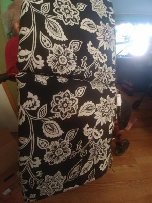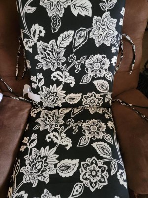 [This review was collected as part of a promotion.] This cushion is such a nice black and flower pattern. The cushion fits great on my dining room chair. It has a great high back that is very comfortable to put your back on. The seat cushion is nice and firm for sitting a long time. The ties on the back help to hold the cushion in place. I truly love sitting on my chair now.