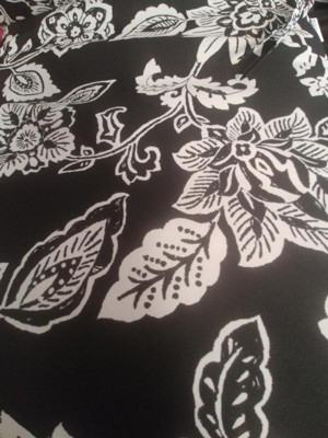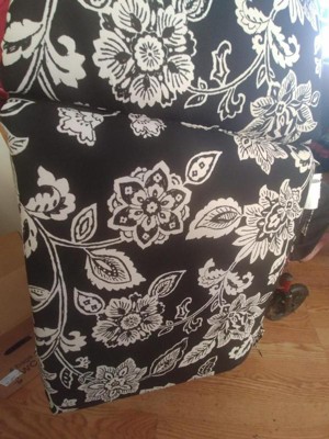 [This review was collected as part of a promotion.] I bought this cushion for one of my porch chairs. It is black and white with flowers on it, and it's pretty! It is not a super thick cushion, but it provides a comfortable seat for a porch chair. The fabric seems to be something that is fairly easy to wipe off with a damp cloth if it gets dirty. It is not completely waterproof, but it should withstand some dampness or dew. All in all I think it's a nice addition!