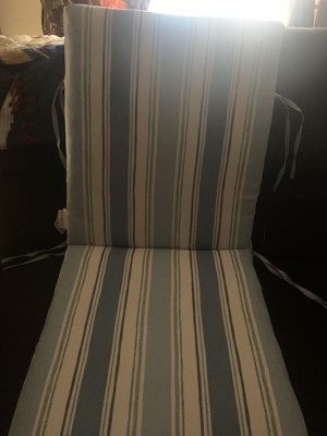 [This review was collected as part of a promotion.] Great quality cushion for outdoor dining furniture. It has four ties on the sides to keep it from shifting around. The French Blue stripes are a very pleasing color. The foam cushion is very comfortable.