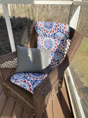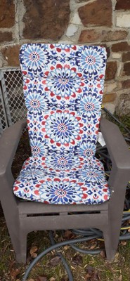 [This review was collected as part of a promotion.] This is a really nice cushion! It’s very well made and the elastic strap holds it nicely to a wide variety of chairs. The fabric is water resistant and wipes clean easily. I love that this pattern fits in nicely with my existing outdoor furniture. I am pleased with this cushion and expect it will last a long time.