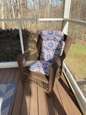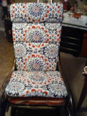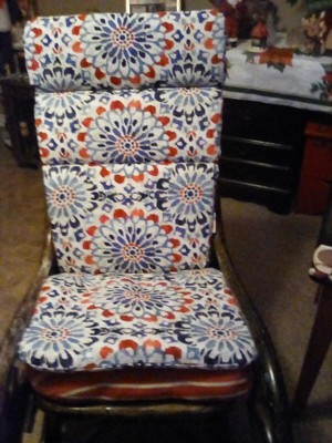 [This review was collected as part of a promotion.] I did not have an outdoor chair to put this on.So I put it on my Brentwood rocker.I love the colors in it.And it is very comfortable. I think it looks great on my rocker and I have recommended it to my friends and family.