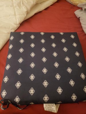 [This review was collected as part of a promotion.] I've been using this pad for two months now. It's very durable and also comfortable. The navy blue coloring is very deep and it has not faded at all. This was the perfect addition to my favorite chair.
