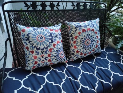 [This review was collected as part of a promotion.] I know it has nice outdoor material and looks great with patio furniture but along with that it goes nice with my Indoor decor.I really like the pop of red with the blues. Look great and you can unzip the cover and gently wash them