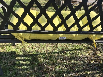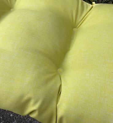 [This review was collected as part of a promotion.] We have an old plastic bench. It’s probably six or seven years old. It’s not very comfortable or pretty so I thought this cushion would help it out even though it’s meant for something else. It fits perfectly and I was still able to tie it on. I love the bright cheery sunshine yellow color. It’s very comfortable to sit on and is easy to clean. Fabric and sewing quality seem good. I have never owned an outdoor cushion so have nothing to compare it to. I will be looking into if there are matching chair cushions when we replace our patio chairs. I’ve never been a yellow person but it looks so great on outdoor furniture that now it want everything in this color.