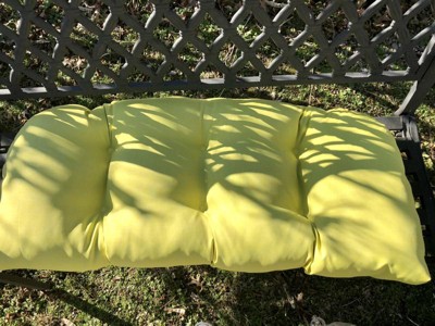 [This review was collected as part of a promotion.] This lemon leala texture outdoor wicker seteee by Arden Selections, is beautiful and so comfortable. It's very well made and the color is so beautiful, bright and cheerful. It lives up my wicker setee. To make it even more perfect, it has ties, which you can secure to your setee, to avoid slippage.