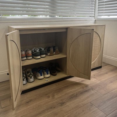Really pretty and functional - we desperately needed a cute shoe storage cabinet. We bought two of these units, affixed them together, and built a simple wood base to sit them on. Only reason it’s 4/5 stars is because one of the doors had pre-drilled holes that cause the door on right side to close slightly off. However, this could’ve just been manufacturing issue on ours.