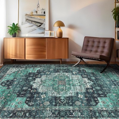 Area Rug 5x7 Vintage Floral Living Room Rug Non Slip, Soft Non Shedding Carpet