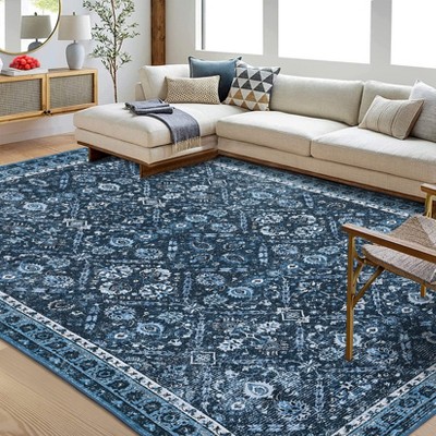 Washable Rug Vintage Rug Non Slip, Retro Oriental Carpet, Soft Non Shedding Thin Floor Covering