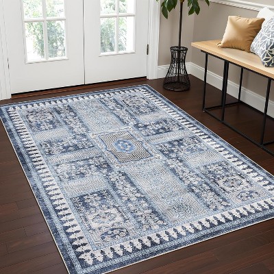 Area Rug 8x10 Washable Rug with Non Slip Rubber Backing, Thin Foldable Geometric Carpet, Soft Non Shedding Floor Covering, Low Pile Rug