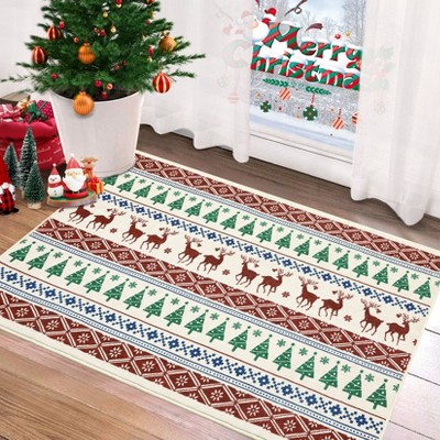 Area Rug Christmas 5x7 Area Rug Deer Xmas Tree Printed Christmas Decor Washable Thin Non Slip Rug Indoor Festive Throw Rugs