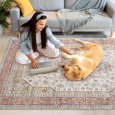 Area Rug for Living Room, Washable Vintage Printed Soft Rugs, Non Slip Low Pile Carpet for Entryway, Kitchen, Bedroom