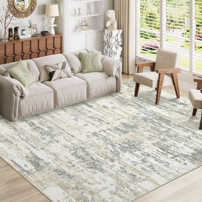 Area Rug - Modern Stripe Style Ultra-Thin Low Pile Carpet for Living Room, Bedroom, Office, Non Slip Washable