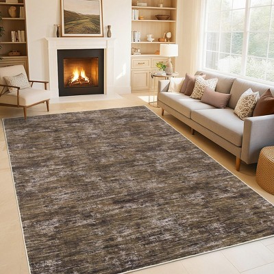 Area Rug 4x6 Washable Low Pile Vintage Rug Non Slip Foldable Accent Throw Rug Foldable Non Shedding Traditional Floor Carpet for Bedroom, Camel