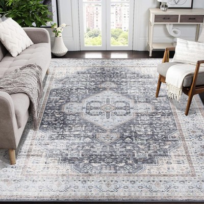 Area Rug Washable Rug Traditional Mat Retro Accent Rug Non Slip Carpet Gray 9'x12'