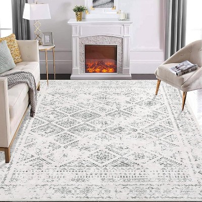 Area Rug, Washable Rugs for Living Room, Boho Floral Area Rug Low Pile Kitchen Rug, Non Slip Soft Indoor Flower Carpet for Nursery Bedroom