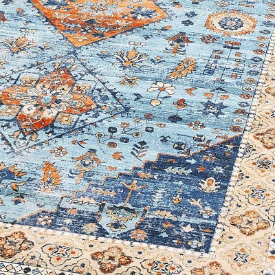 Area Rug, Washable Vintage Oriental Rug - Stain-Resistant Low Pile Non Slip Carpet for Living Room, Bedroom, Farmhouse, Office