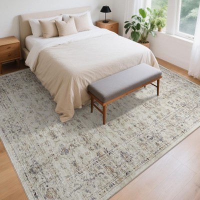 Area Rugs 10'x13' Vintage Printed Low Pile Floor Carpet Non-Slip Backing Stain-Resistant Oriental Rugs Washable Farmhouse Rugs for Bedroom Blue-Black