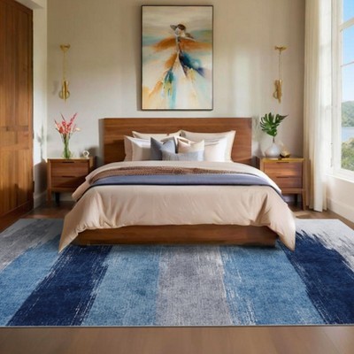 Area Rugs 10x13 Floral Rug Non Slip Large Living Room Rug Washable Vintage Bohemian Soft Carpet for Bedroom Home Office, Navy Blue