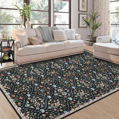 Area Rugs for Living Room Bedroom Vintage Distressed Rug Floral Print Accent Rug