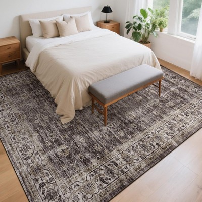 Area Rugs: Washable Non-Slip Vintage Boho Carpet, Soft Low Pile Foldable Stain Resistant Rugs for Bedroom, Home