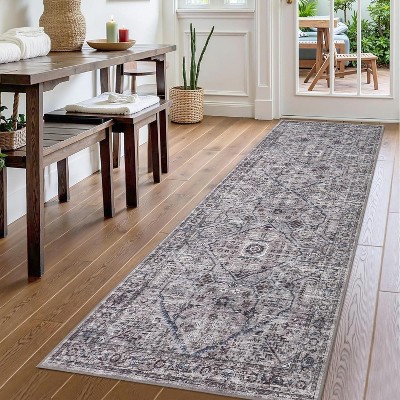 Area Rugs Washable, Soft Vintage Bedroom Rugs, Boho Farmhouse Low Pile Non-Slip Indoor Throw Carpet Rugs for Living Room Dining Room