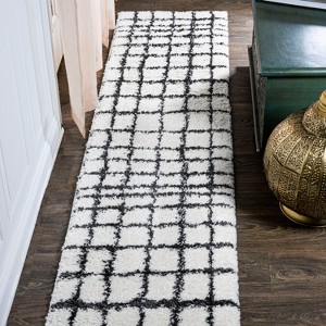 JONATHAN Y Arenal Geometric Grid Shag Rug, Non-Shedding, Easy-Clean, Durable Synthetic Fibers