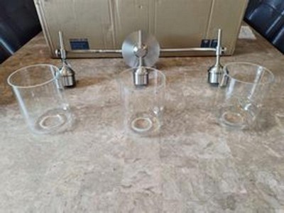 We needed to update our bathroom vanity light. We decided on the Aria 3-Bulb Vanity Light in Brushed Nickel by Quoizel. This fixture adds a lot of light to the room, while giving it an updated modern look. This fixture was easy to install. It came with all the required hardware to connect it. I just needed to provide a screw driver and some electrical tape. The directions were clear and there were pictures to follow along with. The whole installation process, including removing my old fixture, took me 20 minutes. This fixture measures 22.5 inches wide. The circular back plate measures 5 inches. The three glass canisters are made of thicker glass and are sturdy when installed. I like that this vanity light can be hung with the glass bulbs at the top of the fixture, or you can install it so the glass bulbs are at the bottom. I chose to install them with the bulbs facing down. I like the expertise that was used on the shiny brushed nickel frame. The craftsmanship is clean and smooth. This fixture is easy to clean. I can wipe down the frame as well as the glass canisters with a damp cloth. This was a great upgrade to our bathroom decor.
