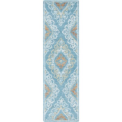 The beautiful transitional style is brought to life through a sophisticated color palette of blue and multi hues, with a rug pattern that showcases a tapestry of ornate medallions and scrollwork. This intricate design, observable in the image, resonates with a sense of timeless elegance, poised to complement both contemporary and classic decors.