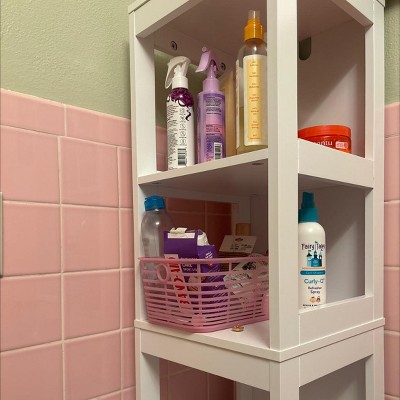 It fits in my bathroom storage unit as a cute bin! It also matches my wall!