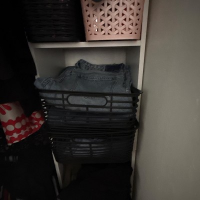 This basket is super cute. I gave it as a gift to a friend’s daughter for her vanity storage. I have it 4 stars because it seems a lot less sturdy than say the Y-weave baskets. I’m not sure how it will hold up over time. I think if I were to use these to store folded clothes (as I do with the Y-weave baskets) the side bars may break with constant use.