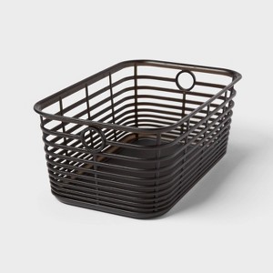 Lend stylish storage to your home with the Aria Jelly Small Decorative Basket from Brightroom™. This small jelly decorative basket has a visually exciting open pattern in a black hue that makes a pretty addition to your decor and holds all of those odds and ends for an organized space. The polypropylene construction offers lightweight convenience and comes with side cut-out handles for easy lifting and movement around your home.