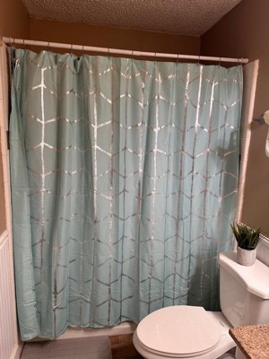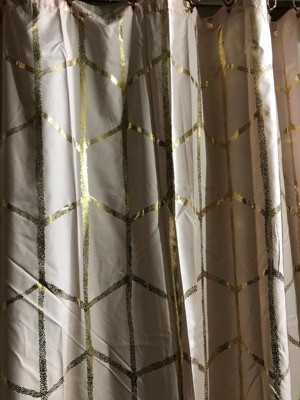 Freshen up your bathroom with the enchanting style of the Intelligent Design Arielle Printed Metallic Shower Curtain. Flaunting a geometric metallic print, this stunning shower curtain creates a fun and eye-catching look! Machine washable for easy care, vivid hues brings a hip and modern flair to your bathroom. Machine Washable.