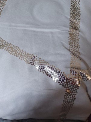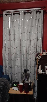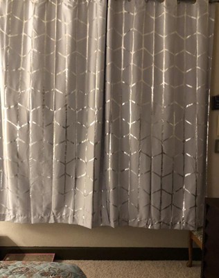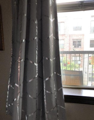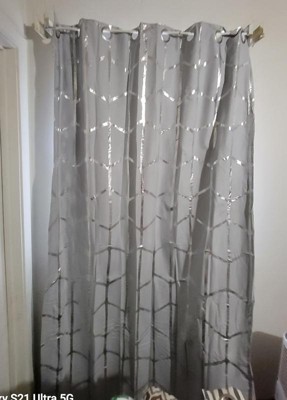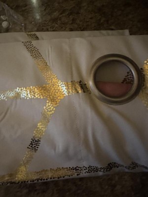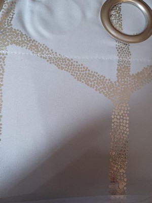Freshen up your space with the enchanting style of Arielle Blackout Metallic Printed Panel. The stunning panel flaunts a geometric, metallic print against a light color ground for a fun and eye-catching look! Finished with a heavy 3 pass foamback liner, this panel is 100% total blackout providing energy efficiency and added privacy. Grommet top makes this panel easy to hang, open, and close through the day. Machine washable for easy care; complete the collection with coordinating bedding and shower curtain sold separately.