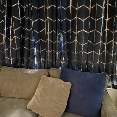 [This review was collected as part of a promotion.] The Raina Total Blackout Metallic Print Grommet Top Curtain Panel are the best black out curtains I have so far. The curtains themselves are very beautiful and are made of good material. The metallic foil pattern is gorgeous and eye catching and does a great job of blocking sunlight and cold. Overall, I would recommend these curtains.
