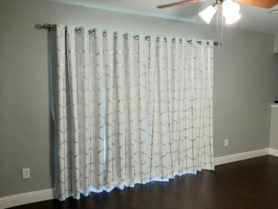 The curtains are better than I expected. They are full blackout curtains. The gray with metallic silver design are beautiful. I’m am delighted. I also love the way the fold marks have loosen & disappeared. I was worried about that from other reviews. Due to the extra long rod; I had a dip that caused my other curtains to stick. So I ordered clear shower rod cover. That did the trick. The curtains slide like they are on a greased rail. Very pleased!