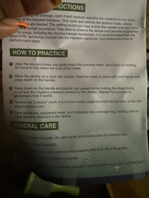 This is a product that you hope you will never have to use. It gives me peace of mind knowing that it’s in my kitchen should the need ever arise to use it. I’ve had targeted ads for this type of device online and this particular brand has a good price point. My kids and I familiarized ourselves with the device and it is really airtight and seals surprisingly well to allow for strong suction. Anyone who has even been near a choking situation knows how scary it can be. With this device at least you can feel prepared to simply 1. PLACE the device. 2. PUSH the pump down into the facemask and 3. PULL the suction back (hopefully with the foreign object!)