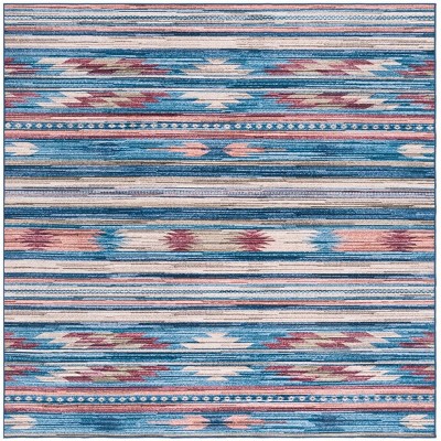 Arizona ARZ105 Machine Washable Skid Resistant Power Loomed Indoor Area Rug - Beige/Blue - 6'x6' - Safavieh