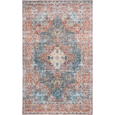 Transform your living space with the timeless elegance of our Traditional Style Area Rug. Measuring a versatile 5' x 8', this medium rectangle rug is the perfect size for adding a touch of sophistication to any room. Its beautiful light blue and rust color palette creates a serene yet vibrant atmosphere, blending effortlessly with various interior designs.