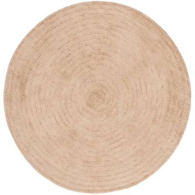 Elevate your living space with this exquisite area rug, crafted with precision and care in a 6-foot round dimension, perfect for adding a touch of elegance to any room. The rug features a harmonious blend of beige and rust hues that create a warm and inviting atmosphere.