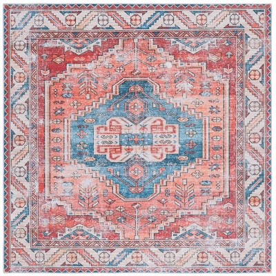 Arizona ARZ229 Machine Washable Skid Resistant Power Loomed Indoor Area Rug - Olive/Red - 6'x6' - Safavieh