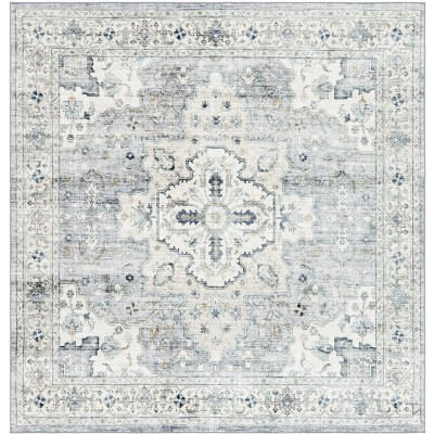 Arizona ARZ913 Machine Washable Skid-Resistant Power Loomed Indoor Area Rug - Grey/Turquoise - 6'x6' - Safavieh