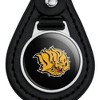 - QUALITY MATERIAL: Our durable round keychain is crafted from leather with a glossy resin-topped emblem featured design shown on one side. Approximately 1.5" (3.8cm) x 2.5" (6.4cm) in overall size, emblem is 1" (2.5cm)..