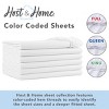 Lulworth hotel quality white fitted sheets have a 200 thread count and are constructed from a 55/45 blend of cotton and polyester. Cotton/poly blends easy-care fabrics that make laundering simple. No pressing is needed. Lulworth fitted sheets are available in twin, full, queen, and king sizes, and come in bulk packs of 6. Buying linens in bulk is an excellent choice for large families, vacation homes, boutique and full-service hotels, Airbnbs, and rental properties of all kinds. Color-coded stitched hems differentiate full size (red), queen size (blue) and king size (green), and make it easy to sort through your bedding.