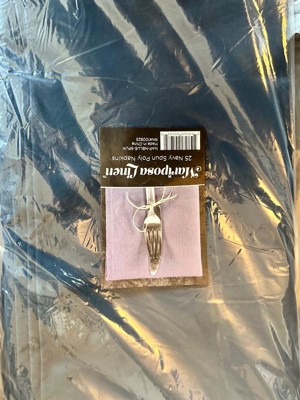 SET OF 25: 25-pack of Professional and premium quality spun poly napkins feel soft and elegant. These dinner cloth napkins get softer with subsequent washes without unraveling. The hemmed edges give the napkin strength and durability.