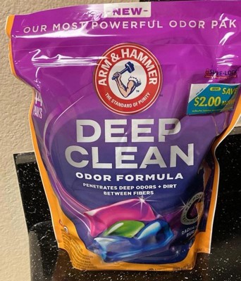 Everyday dirt and stink linger deeper than you think! Now clean deeper with ARM & HAMMER Deep Clean Stain Formula Laundry Detergent Power Paks (vs. ARM & HAMMER Plus Oxiclean Power Paks). The most powerful stain remover Power Pak by ARM & HAMMER yet, this concentrated laundry detergent features pH Power Technology with millions of ionic micro-scrubbers that attack dirt deep between fibers. This detergent infuses a sparkling clean scent and comes in a 44 count pouch, enough for up to 44 medium loads when used as directed. Simply add two Power Paks for heavily soiled loads and one Power Pak for lightly soiled loads. Plus, this HE concentrated laundry detergent works in all machines and temperatures. Versatile and affordable for generations of families, ARM & HAMMER Baking Soda has been the standard of purity and a trusted household staple in millions of cabinets and pantries.