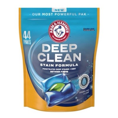 - 44 count pouch of ARM & HAMMER Deep Clean Stain Formula Laundry Detergent Power Paks, Sparkling Clean Scent for a powerful clean with advanced stain removal technology